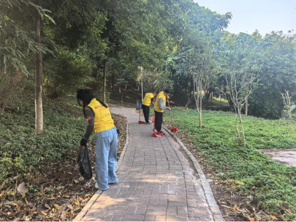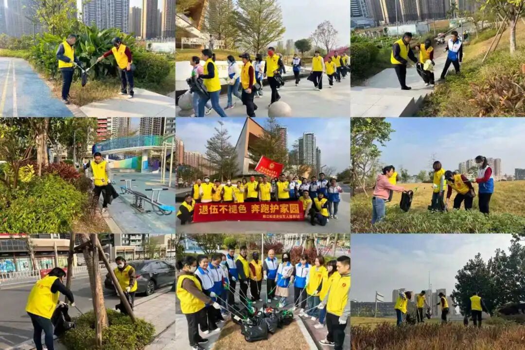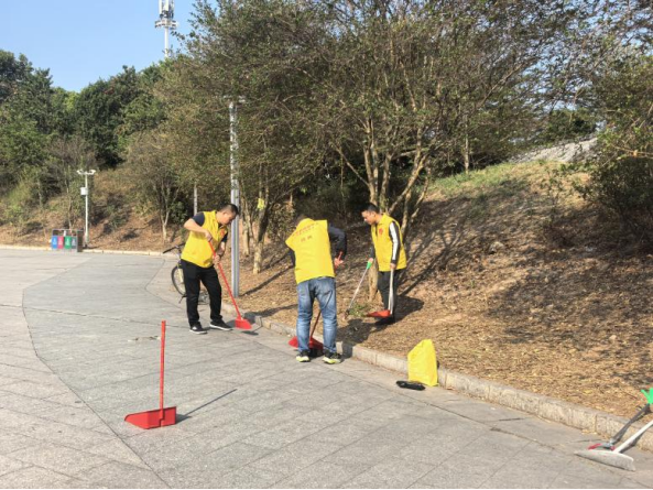 园洲镇战旗志愿服务中队组织开展了“汇聚志愿力量·共建绿美家园”为主题的志愿服务活动。志愿服务队的队员们携带着工具一大清早便来到九潭刘伯温公园,大家分工合作,对公园周边环境、走道、卫生死角等垃圾进行清理,对公园运动场、球场、室外健身场所等进行打扫清洁,活动得到广大正在晨运的群众一致称赞,并纷纷加入志愿服务队伍,共同为美好环境贡献一份力量。