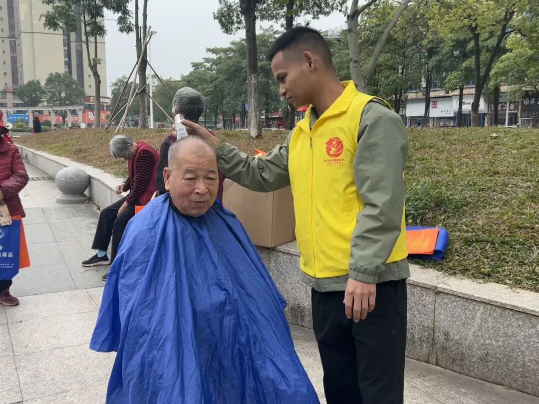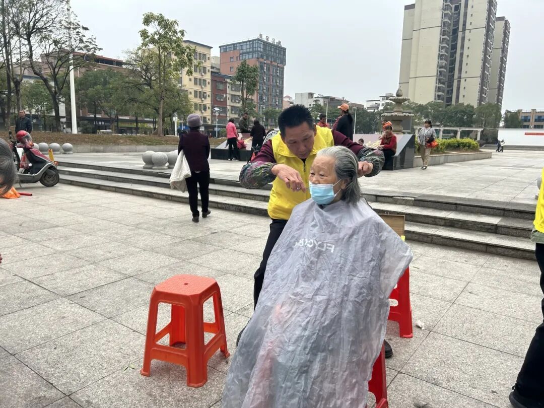 泰美镇退役军人服务站组织战旗志愿服务队现场开展暖心义剪,这支退役军人队伍始终延续“退役不褪色、建功新时代”的军人担当,用专业娴熟的手艺和贴心周到的服务,为泰美镇居民送上冬日里的暖心关怀。