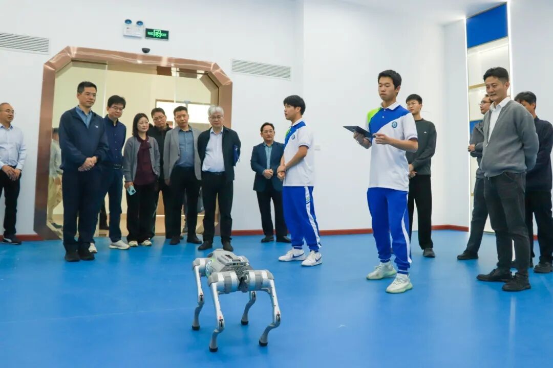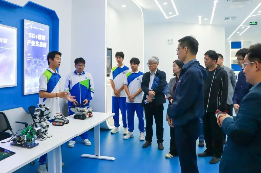 考察团先后参观无人机研学实训中心、人工智能体验中心和未来空间,通过聆听实训基地课程融合及技能人才培养成效的详细介绍,察看学生学习实践成果展示,详细了解学校在信息技术领域的先进设施设备、实践教学模式以及创新成果应用,感受学校“以实训促教学、以技术强技能”的办学成果,对学校现代化的办学条件、鲜明的专业特色以及学生出色的创新实践表示肯定。